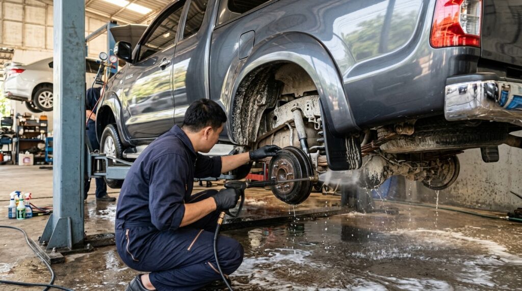 เพื่อความสมบูรณ์แบบ คุณควรนำรถขึ้นฮอยส์ตรวจเช็กสภาพช่วงล่างทั้งหมด ตรวจดูความสมบูรณ์ของโช้คอัพ บูชปีกนก และลูกหมากต่างๆ หากพบชิ้นส่วนที่เสื่อมสภาพหรือฉีกขาด ควรพิจารณาเปลี่ยนอะไหล่ใหม่เพื่อให้การขับขี่กลับมานุ่มนวลและแน่นหนา สำหรับระบบเบรก ควรทำความสะอาดจานเบรกและผ้าเบรก พร้อมทั้งตรวจเช็กระดับน้ำมันเบรกให้อยู่ในเกณฑ์มาตรฐาน รถที่ช่วงล่างแน่นและเบรกหนึบ จะช่วยให้คุณสามารถยืนยันราคาที่ตั้งไว้ได้อย่างมั่นใจ